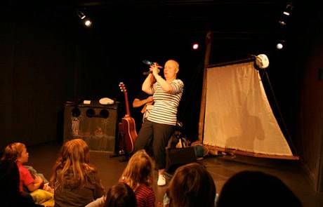 Elle donne tout de suite le ton, très proche et complice des enfants, elle sait comment capter leur attention et celle des grands par la même occasion. Un vrai spectacle, pas une simple suite de chansons, toute la salle part traverser l’océan pour aller rendre visite à Mémé chaussette (les grands-mamans tricotent beaucoup). Elle sait créer une atmosphère spéciale, avec de temps à autre une touche de poésie ou d’émotion.